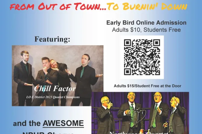 The Northern Pines Harmony Brigade presents its annual a cappella Harmony Showcase on Saturday, May 2, 2026, at 7:30 PM at the Crowne Plaza Minneapolis West in Plymouth. The evening features championship barbershop quartets and a full chorus of singers from across the country. Open to the public; families and music lovers are welcome.