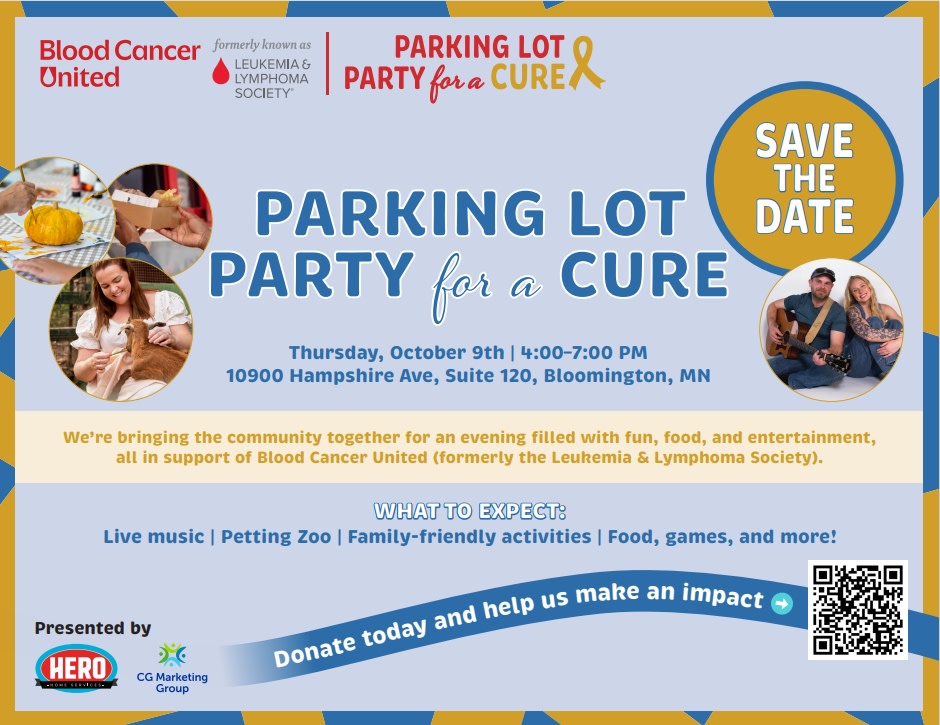 Hero Home Services is hosting its first-ever Parking Lot Party for a Cure in support of Blood Cancer United (formerly known as the Leukemia & Lymphoma Society). Attendees can look forward to live music from the Jake and Josie Band, great food and drinks, raffles, and family-friendly activities, all while contributing to cancer research patient support. Hero Home Services has set a fundraising goal is $2,000-5,000.