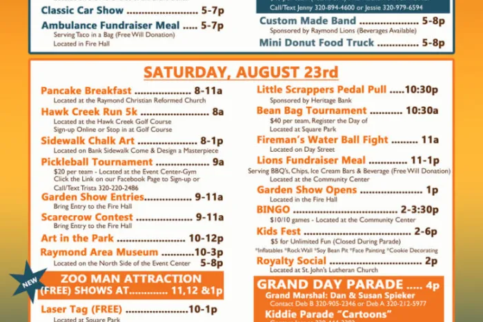 Come celebrate the 2025 Raymond Harvest Festival with us on August 22-24th!