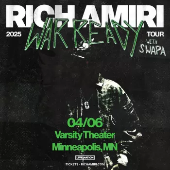 Rich Amiri brings their War Ready Tour to Varsity Theater on April 6th with special guest Swapa! Make sure you get your tickets now!