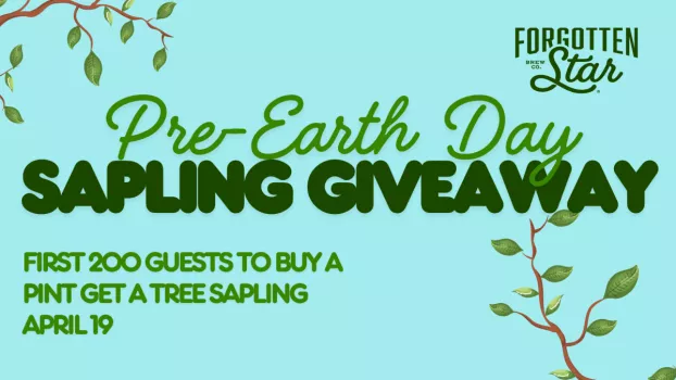 Get ready for Earth Day with us and celebrate with a complimentary tree sapling when you purchase a pint on April 19! Make sure to be one of the first 200 people, begins at 11AM. Cheers!