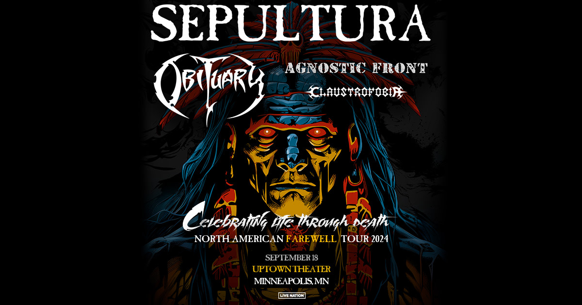 Sepultura takes on Uptown Theater on September 18th! With them they bring Obituary, Agnostic Front, and Claustrofobia!