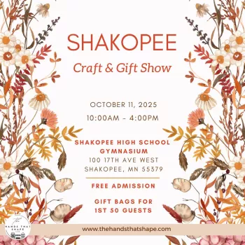 Mark your calendars! Join us for a Craft & Gift Show on October 11, 2025, from 10am to 4pm at Shakopee High School (Gymnasium), Shakopee, MN!