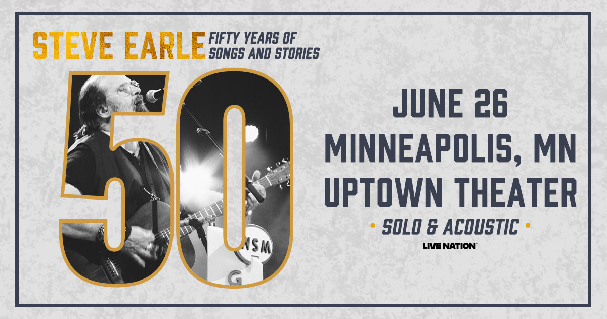 Steve Earle takes the stage at Uptown Theater on June 26th to celebrate 50 Years of Stories and Songs! Make sure to get your tickets now!