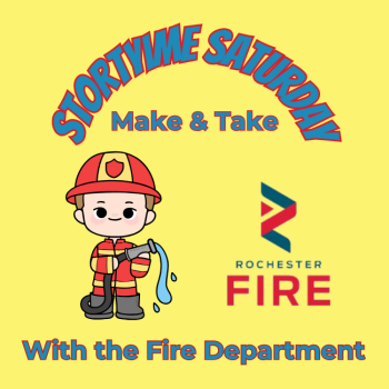 The Rochester Fire Department will be here on Saturday, October 19th at 10:00 for our monthly Storytime and Make & Take Event.