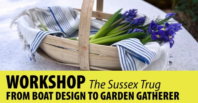 Trug comes from the old English word "trog", meaning boat-like. The "modern" trug gardening basket was developed sometime around 1850 in the small town of Herstmonceux in East Sussex, UK. To this day, Sussex trugs are made entirely by hand. In this workshop, you will build a trug made of two hoops of steamed ash wood for the frame, filled with overlapping thin strips of ash secured with clenched copper nails, in the same manner as clinker built or lapstrake wooden boats. You have the option of building either a shallow trug for gathering flowers and herbs, or a deep trug for collecting fruits and vegetables. Trugs are simple, beautiful, functional, light weight, and long lasting, some are still in use after 100 years. Wonderful for cut flowers or your garden produce and lovely for indoor use and for special gift baskets as well. Deadline for registration is Saturday, May 10