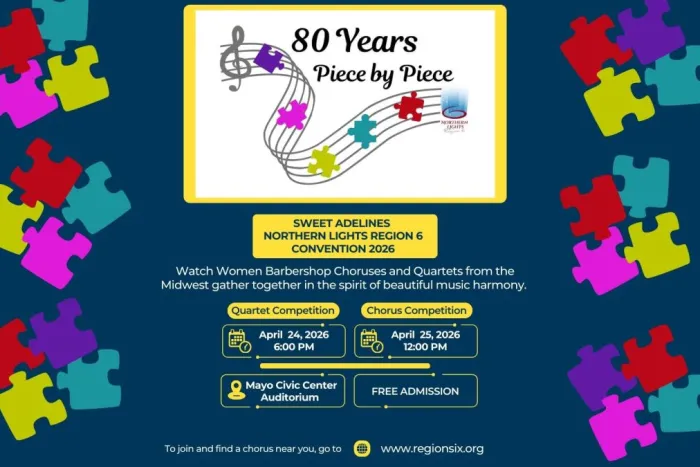 Every year, choruses and quartets from Region 6 gather together for Convention and Competition. We have been doing this spectacular event and we are not able to keep it to ourselves anymore, especially because we are celebrating our 80th year! We are hoping that you will come and help us share what our organization does and how we impact the community through singing. In fact, "Harmonize the World" is our motto.