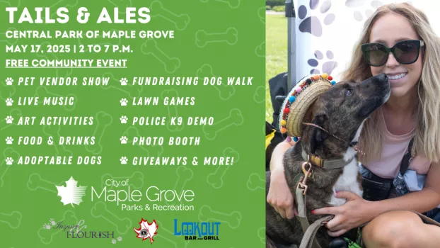 Join us as we celebrate our pets at Central Park of Maple Grove on Saturday, May 17 from 2 to 7 p.m. Tails & Ales will feature a vendor show with local businesses, organizations, rescues, & non-profits. We will also have adoptable animals, a photo booth, art activities, prizes, live music, a visit from the K9 Unit, food, drinks, and more!