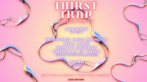 Get ready for Thirst Trap: Pride Party at the Varsity Theater on Saturday, June 14th! Enjoy a DJ set by Leadfoot, dazzling drag performances from Mercedes Iman Diamond, Luna Muse, Domita Sanchez, and Priscilla es Yuicy, plus a live set from SYM1. Don’t miss out, grab your tickets now!