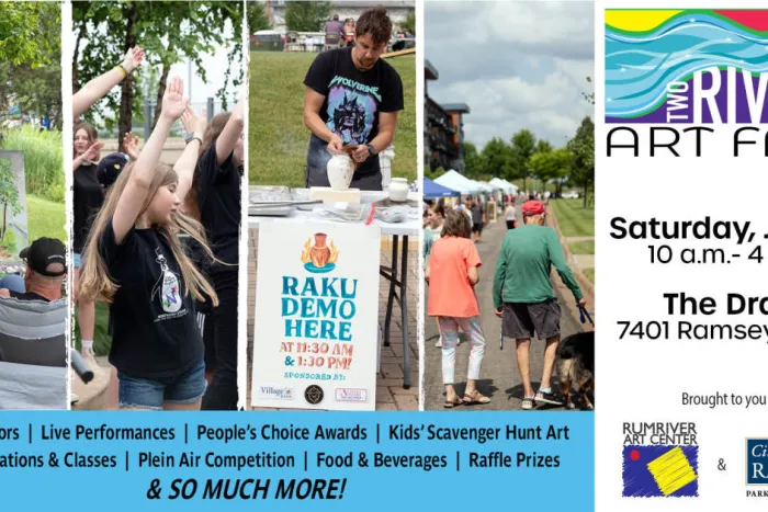 Learn more at https://www.ci.ramsey.mn.us/329/Two-Rivers-Art-Fair