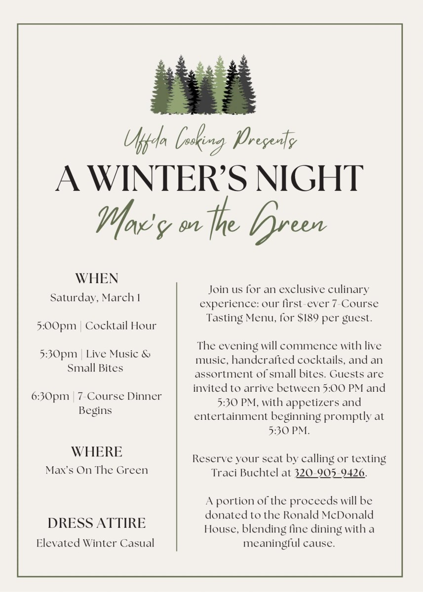 We are very excited to partner with Uffda Cooking to present this exclusive culinary experience!