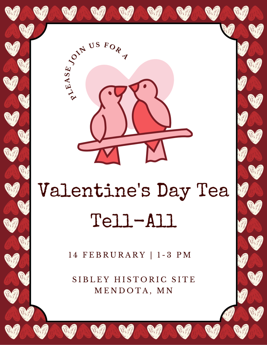 Pre-registration is required. Sign up at https://dakotahistory.org/events/1080-feb-14-valentines-day-tell-all-tea-at-sibley