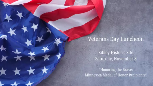 Pre-registration for this event is required at https://dakotahistory.org/events/1040-nov-8-veterans-day-luncheon-at-sibley so that food can be ordered. Please select the dressing you prefer for the salad course, and please let us know in the notes section if you have any dietary needs/restrictions!