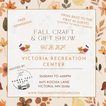 Step into a world of artisanal magic at our Craft and Gift Show on October 26, 2024, at the Victoria Recreation Center (Gymnasium), Victoria, MN. From 10 AM to 4 PM, immerse yourself in a bustling marketplace of local artisans and crafters. This event is the perfect opportunity to explore a rich array of handcrafted goods, perfect for gifting or adding a unique touch to your home. Join us for a day of inspiration, community, and the finest local crafts! Free admission & free parking.