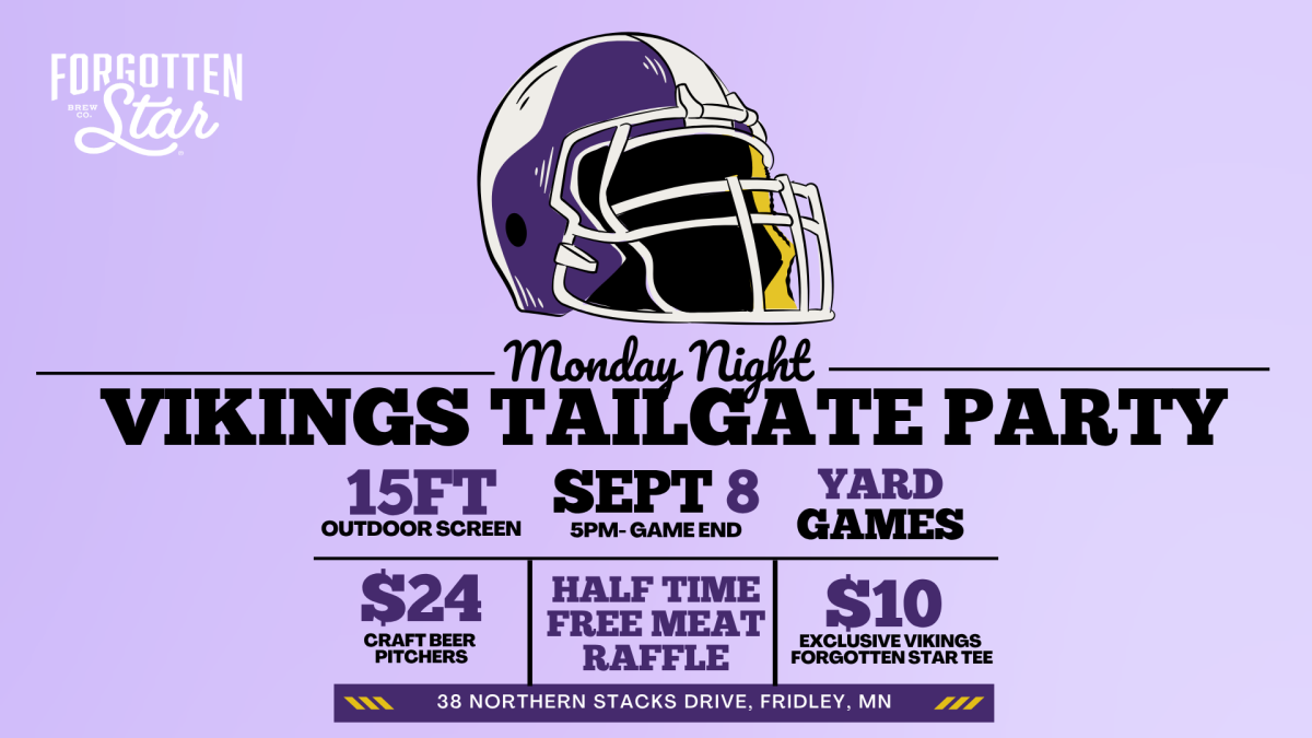Are you looking for the ultimate kick off to the 2025 Vikings season?! Join us at Forgotten Star Brewing for some Monday Night Madness during our Tailgate Party!