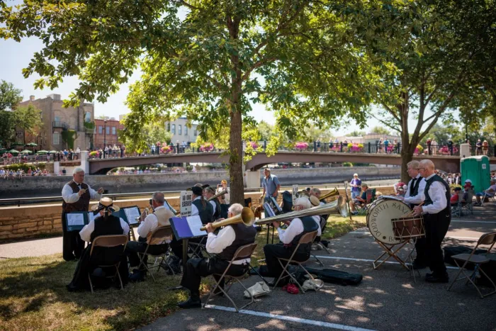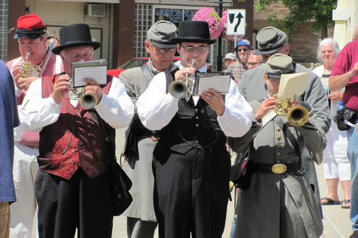 Saturday at noon on both sides of the Cannon River in downtown Northfield a Battle of the Bands will occur. VBF 2026 bands will be placed on both sides of the river and perform period songs from the 19th century in a round robin sequence. Spectators may position themselves on either side of the river to enjoy this spectacular musical experience.