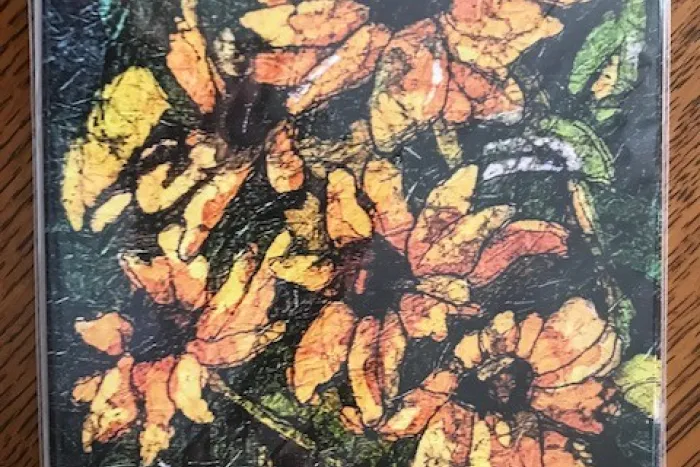 Watercolor batik is painting several alternating layers of watercolor and melted wax on rice paper. Using the wax as a resist first to create white, then over watercolor to save that color for future layers. We work from light to dark until the whole surface is covered watercolor and wax. Then the batik process is to crinkle the whole painting into a ball to crack the wax, and straighten it all out to add a final layer of watercolor to soak through the cracks. Then we iron it out in newsprint to see what we've created! The first painting is a step-by-step to learn the process. During drying time, there will be time to work on 1-2 more paintings of your choice.