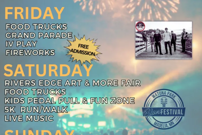 Experience the sounds of live blues under the summer sky at the Watona Park Blues Festival in Madelia, Minnesota. Held during the annual Madelia Park Days, this outdoor concert brings together talented regional musicians for a day of unforgettable live music in beautiful Watona Park.