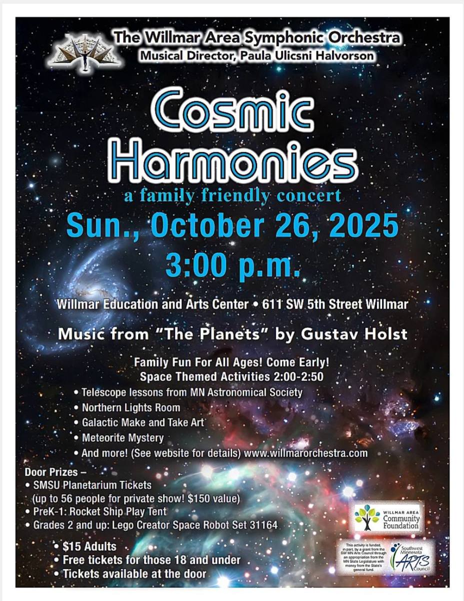 Tickets available prior to the concert at: www.willmarorchestra.com or at the door