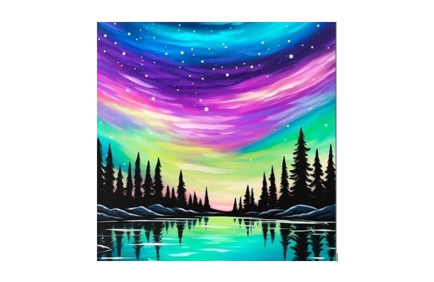 Local artists inspire and instruct customers step-by-step to create their finished painting.