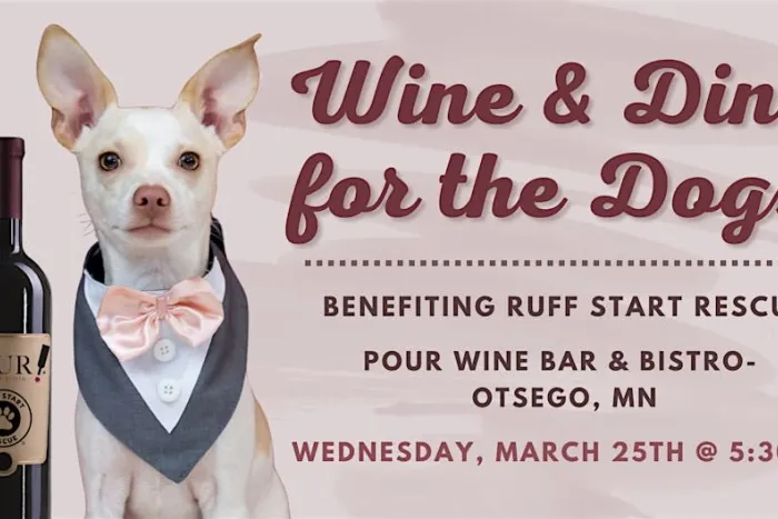 Enjoy a 4-course dinner and wine pairing benefiting Ruff Start Rescue! POUR Wine Bar & Bistro is hosting a four-course dinner with wine pairings on Wednesday, March 25th. There will be a social at 5:30 pm with dinner starting at 6:00 pm. Tickets are $60 per person and must be purchased online by March 20th. Reserve your spot early, as space is limited. Dietary restrictions: Please include a comment at checkout or email [email protected] We hope to see you there!