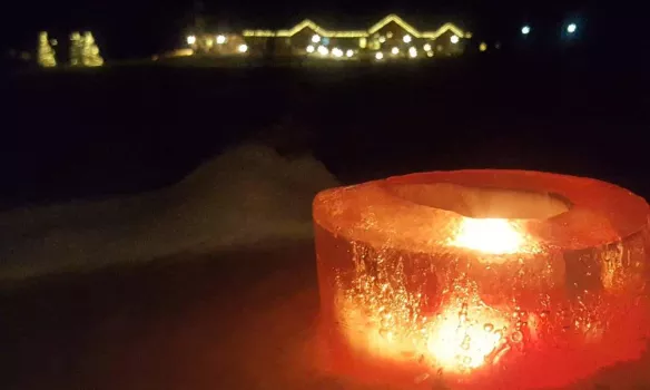 An ice luminary snowshoe at 7 Vines Vineyard is packed with additional fun! Live music by local acoustic guitar guys - The Ice Holes, bonfires, s'mores, complimentary glass of wine, . Enjoy the vineyard by snowshoe. Other food and wine available for purchase. Snowshoes included or bring your own.