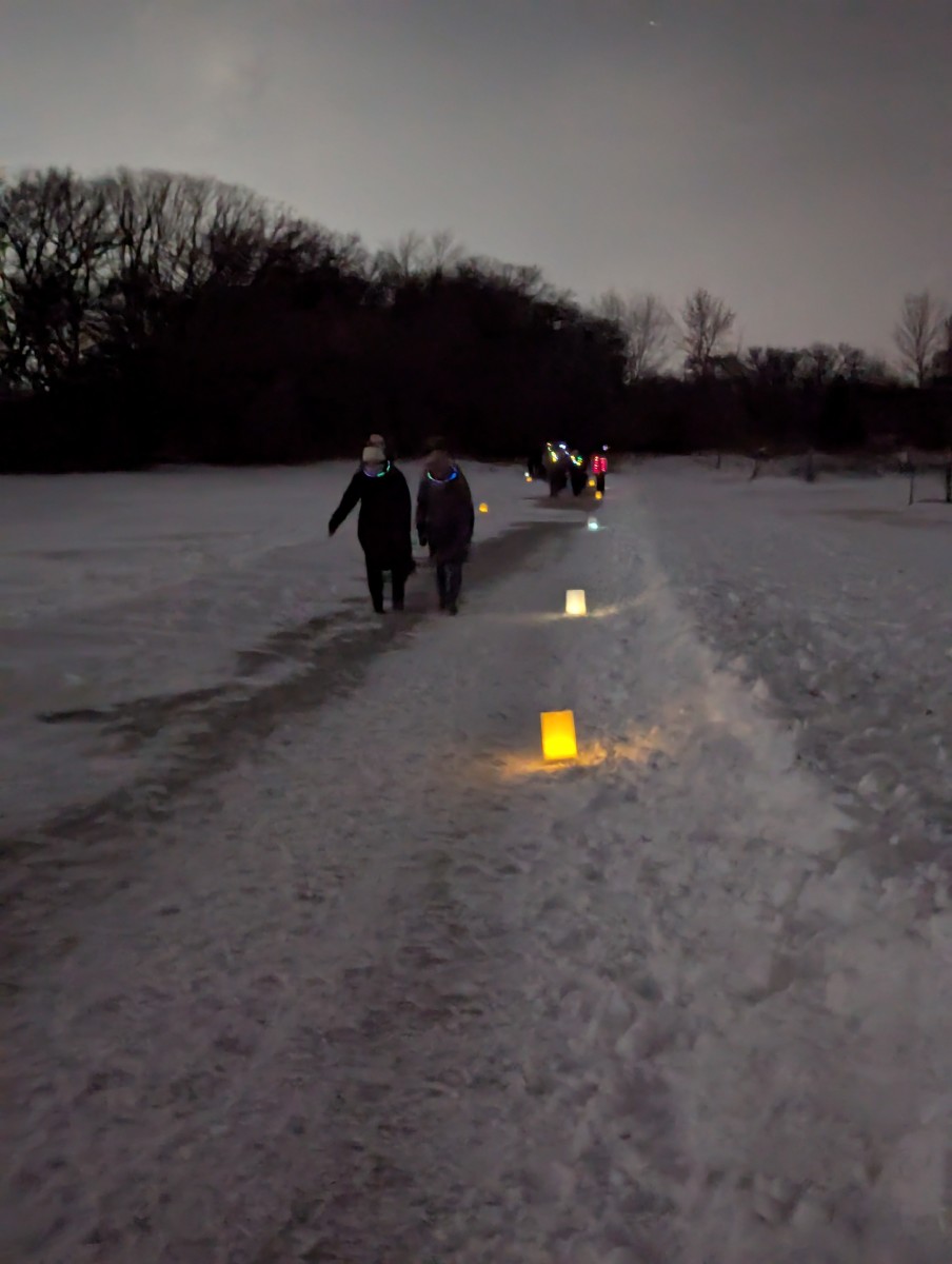 Choose your own adventure: Walk the illuminated paths as many times as you want! The short loop is about a half mile, the longer loop is about a mile. A map will be posted soon.