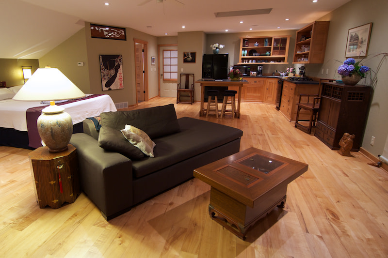 The tranquility of Japan, and the luxury of a resort spa....all these can be found in The Asahi Loft of Harmony a private accommodation for two. Only .5 miles to the Harmony Preston Trail, summer visitors enjoy riding the 60 miles of the bike trail and in the winter that same trail welcomes cross country skiers with easy access. Off road parking with ample room to store your bikes while you relax in the soaking tub or with a beverage on your private deck.