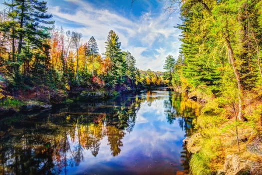 Treat yourself to a visit to Banning State Park, just minutes off I-35 near Sandstone. In the spring, watch daring canoeists and kayakers shoot the turbulent rapids at Blueberry Slide, Mother's Delight, Dragon's Tooth and Hell's Gate. In the summer, hike along the Kettle River amid dramatic sandstone rock formations with lush lichens, liverworts and mosses. Visit Wolf Creek Falls, the Log Creek Arches and Robinson's Ice Cave. Take in the historic ruins of Banning Sandstone Quarry. 17 mi hiking trails, river fishing and boat access; and 6 mi snowmobile trail. 19 km mostly beginner ski trails through forest and passing the scenic Kettle River Rapids.