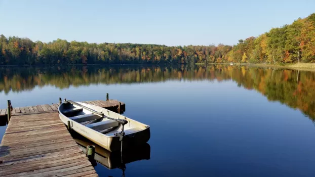 We are a family run campground with lots of space to play in. Our private 90 foot deep, spring fed lake is wonderful to swim, fish and play in. To keep our lake pristine, we allow electric motors and human power only. There is a nice sand beach and a swimming raft. We also offer rentals of fishing boats, pontoons, paddle boats and canoes. For out of the water fun, we have a sand volleyball court, horseshoes pits, children's playground, and trails for hiking, & biking.