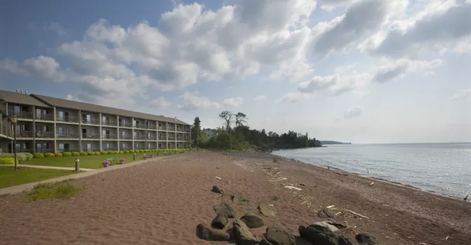 Complimentary full hot breakfast is served in the fireside lobby each morning. Experience the splendor of the North Shore at this award winning smoke-free inn located on Lake Superior in the village of Grand Marais. Stroll along our private cobblestone beach with crashing waves. Experience the splendor of an autumn walk in the woods. Catch a glimpse of a moose. Breathe in fresh air and regain a sense of tranquility. Take a short walk from the hotel to many unique shops, galleries and restaurants. Top off your day relaxing in our newly remodeled giant whirlpool.