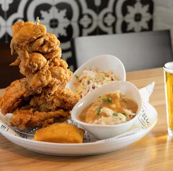 The Block Food + Drink in St. Louis Park on Walker Street is open for lunch or dinner daily and brunch on the weekends. The Block serves up hot broasted chicken, elevated bar food, sandwiches and burgers, rice bowls, vegan items and more. We offer both indoor and outdoor seating with a year-round dog-friendly patio for your enjoyment.