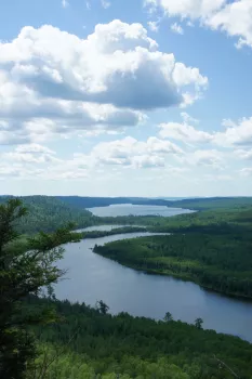 The Border Route Trail is a 65-mile long wilderness hiking trail that crosses the Boundary Waters Canoe Area Wilderness (BWCAW) in the far northeast corner of Minnesota (the Arrowhead) and follows the international border between Minnesota and Ontario, Canada. It connects with the Superior Hiking Trail on its eastern terminus and with the Kekekabic Trail on its western end at the Gunflint Trail (Cook Cty. Road 12). The closest towns are Grand Marais (beginning of Gunflint Trail, County Rd 12) and Hovland (beginning of Arrowhead Trail, County Road 16).