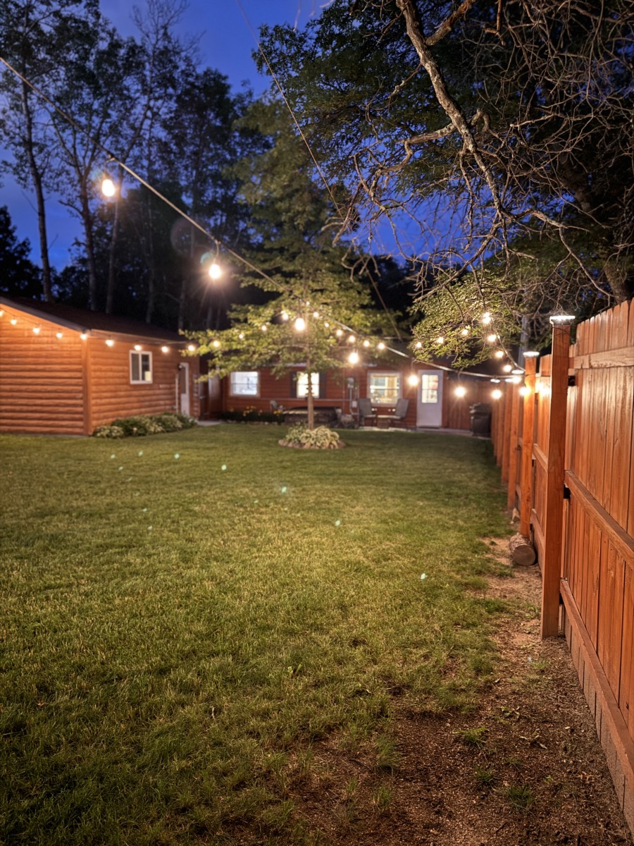 Escape to our northern haven! We've got the perfect spot for you, complete with a sprawling fenced-in yard for your furry friends and cozy string lights illuminating our fire pit for added charm and privacy. Just a stone's throw away from the beach, resort, golf course, and lively bars & restaurants, your every whim is within reach. Don't forget to bring your boat – the local landing is just three blocks away for endless lake adventures. So, why wait? Come kick back, and let the adventure begin!