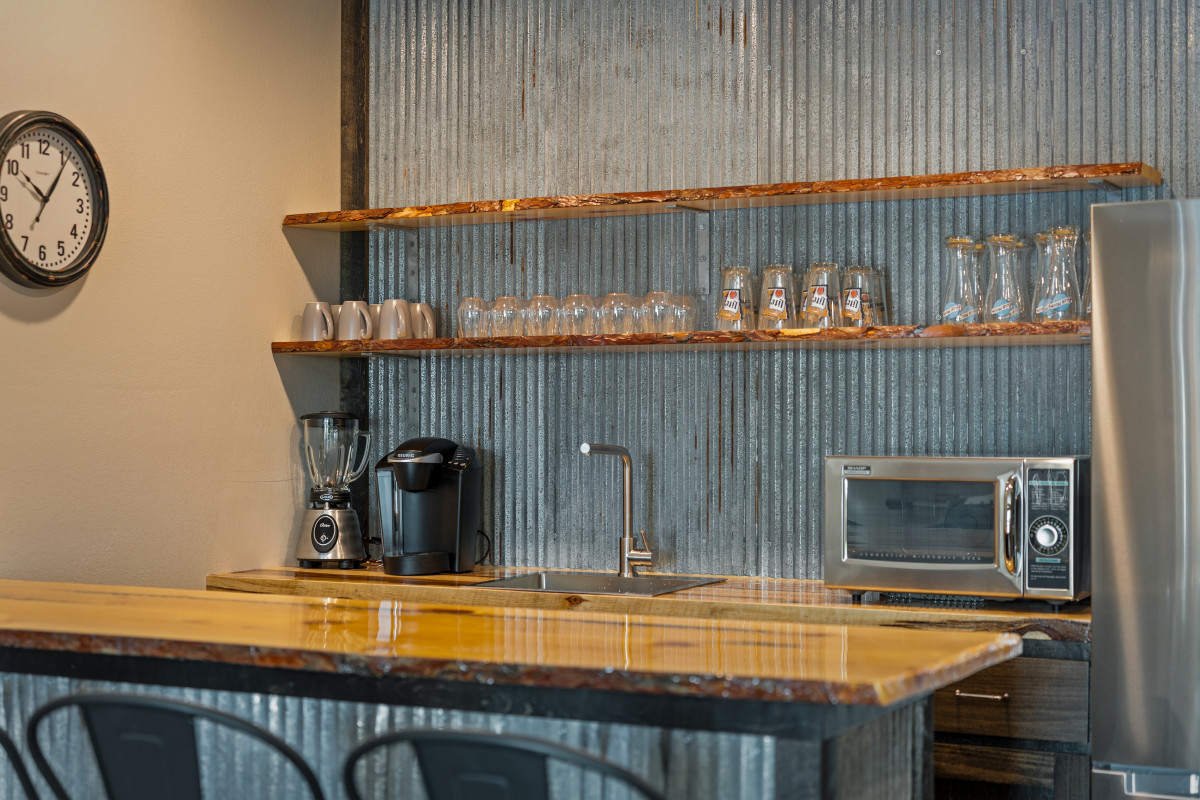 -Wet bar; Keurig, blender, microwave, fridge, sink, pizza oven, glassware