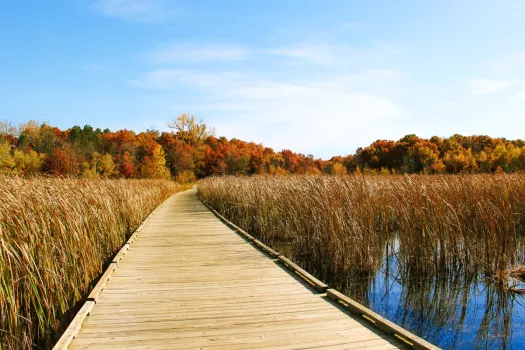 The bright colors that pop here in the fall makes it feel like a state park in the metro area There is a beautiful boardwalk section to hike that really stands out in the autumn time.