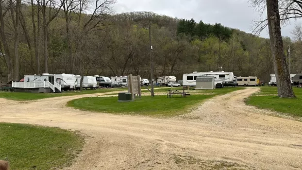 A complete family campground with swimming pool, horseshoes, basketball, hiking, fire rings, firewood, playground, large shelter and sewer sites. Free showers. Cabins are available. Weekend activities include waffle breakfasts, DJ, kids' games. Boat ramp & slips on Mississippi. Daily, weekly, monthly, seasonal rates. Open mid-Apr to mid-Oct. Located on the Bluff side of HWY 61/14.