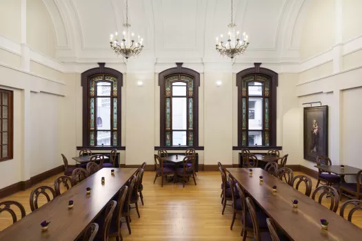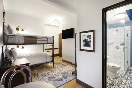 Celeste of St Paul | Hotel + Bar is situated in the center of Downtown St. Paul, mere blocks from the State Capitol, and adjacent to the historic Fitzgerald Theater. We are equally accessible to downtown Minneapolis and the University of Minnesota via the light rail station steps from our front door. Steeped in history, yet up-to-date in every regard, guestrooms at Celeste St Paul combine the latest technology with timeless style and comfort. Features include free Wi-Fi, smart TVs, premium bedding, custom spa amenities, in-room Alexa, and complimentary breakfast.