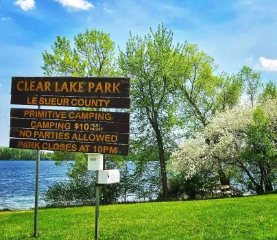 Clear Lake Park is located on the west side of Clear Lake in Lexington Township. The quiet park and campground sits on a hill that overlooks the lake to the east while providing a tree row to the west for campers. The park consists of 2.2 acres of land, 550 feet of a native shoreline, a floating fishing pier that comes 60 feet off shore, and 4 primitive campsites. The Minnesota DNR also owns a boat ramp located along the park boundaries that has a concrete ramp, dock, and gravel parking lot. The fishing pier is handicap accessible and located along a shoreline frontage road in the park.