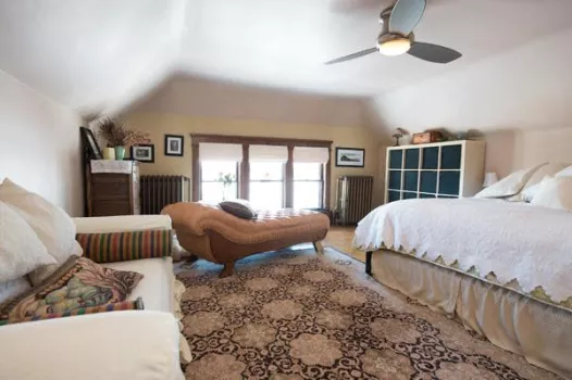 The three-story Craftsman residence was built in 1915 by Elav Ericsson and fully restored by the Innkeeper, Carla Sherman in 2010. There are two guest rooms on the second floor and the entire third floor forms another suite perfect for a romantic getaway weekend.