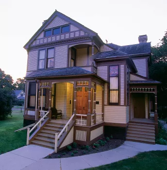 Built by Solomon G. Comstock in 1883, this Victorian home showcases the popular styles of the time, blending Queen Anne and Eastlake designs. Comstock was a U.S. Representative and banker who helped build James J. Hill’s railroad. He and his wife, Sarah Ball, raised three children in the home. The Comstock House is a Minnesota Historical Society historic site managed by the Historical and Cultural Society of Clay County.