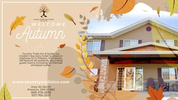 Nestled in beautiful historic bluff country. Country Trails Inn & Suites offers 40 beautifully decorated rooms, including 6 theme whirlpool suites, indoor pool and spa, and an expanded continental breakfast. Blocks from both the Root River and Harmony-Preston Valley State Bike Trails. We are now 100% Smoke Free