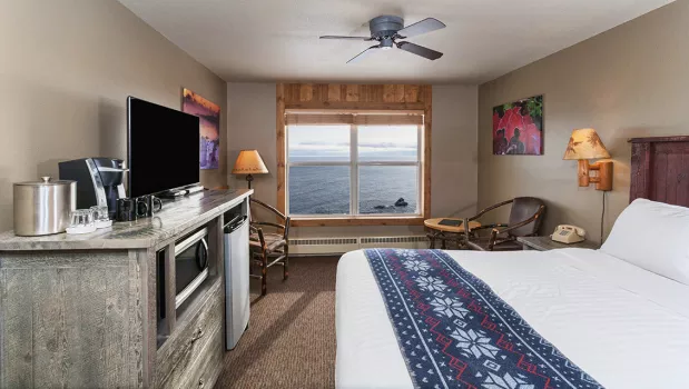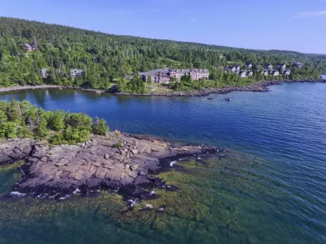 This beautifully secluded Lodge is placed in a gorgeous setting along Superior's craggy North Shore where all rooms view the Lake. Amenities include a great hall with a massive stone fireplace, intimate lake-side dining room, pool, hot-tub, sauna, in-room fireplaces, and Jacuzzis. Free use of canoes and snow shoes. Evening campfire with s'mores. Hiking and biking trails just outside our door. Cove Point Lodge is nestled away on a 150-acre private preserve overlooking our natural cove on Lake Superior. All 45 rooms face the lake and offer oversized windows to enhance the view. We also have several secluded and deluxe cottages. The lodge reflects rustic Scandinavian architecture. All rooms and common areas are clad in the warmth of cedar and pine and the lodge is entirely smoke-free. Our full-service lodge features a Great Hall with a massive stone fireplace, stunning lakeside dining room, lounge, pool, hot tub, and sauna. In addition to the Lake Superior view, each room features a refrigerator and our deluxe rooms include a microwave, king-sized beds, and a fireplace and/or jacuzzi. Five NEW COTTAGES, each with two bedrooms, full kitchens, fireplaces, and Jacuzzis, are nestled nearby.The dining room at Cove Point Lodge reflects the resources of the lake with walleye as the featured specialty. Lake Superior herring is often available--netted right off our shore. In addition to superb steaks and pasta, the gourmet touch is evident in the stuffed mushroom appetizer baked in champagne or the Split Rock Shrimp served on wild rice. Our very own Lucca Pasta was featured in Bon Appetit magazine. Our lodge guests are treated to our Scandinavian Continental breakfast each morning complimented by cheese and Norwegian pickled herring. Cove Point Lodge is centrally located near Gooseberry, Split Rock Lighthouse, and Tettegouche State Parks. We also have a direct spur to the Superior Hiking Trail and we are on the paved biking trail to Split Rock and Gooseberry. Our guests enjoy free use of our snowshoes in winter and canoes in the summer. Year-round activities include hiking, Frisbee golf, geocaching on-site, biking, fishing, kayaking, canoeing, diving, climbing, skiing, snowshoeing, and snowmobiling.