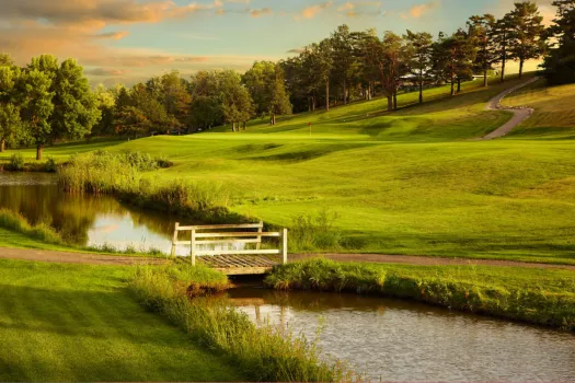 Semi-Private course (par 72) 18 holes. Women's red tees: 69.4/118 5063 yds; men's white tees: 68.1/113 5735 yds; women's white tees: 73.1/126 5735 yds; men's blue tees: 70.0/116 6154 yds. Full practice range and putting green available. Full dining facility overlooks 3 holes and the scenic Minnesota River.