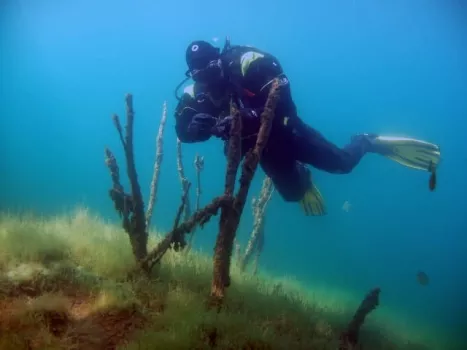 Cuyuna Country State Recreation Area is home to some of the best diving in the Midwest. Located near Crosby and Ironton, the beautiful park features crystal-clear water filled mines with submerged mine shafts, building foundations, vehicles, road beds, forests, shear walls, and depths of up to 530 feet. The mines have been stocked with trout, bass and northern pike; loons frequently swim by; and there is visibility ranging from 30 to 60 feet. The Minnesota School of Diving has created over 50 unique dive sites in the area that are appropriate for all levels of experience. Group fun dives are held in the area up three times a week in the summer. Dive masters are also available to lead people on individual dives. Visit http://www.mndiving.com/contactusmaps.html for details.Dive maps of the area are available at The Minnesota School of Diving in Brainerd. Call 218-829-5953 or send a message to [email protected].