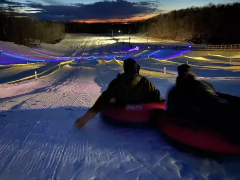 DM also hosts the Landslide Tubing Park with it's own Magic Carpet. The beautiful lodge with a cafe that hosts a variety of food options and the Ace's Wild Bar is perfect for Apres Ski socializing. DMRA also grooms around 9k of nordic ski trails. Fat Bikes are available for Winter Rental to ride on our groomed Fat Bike loop.