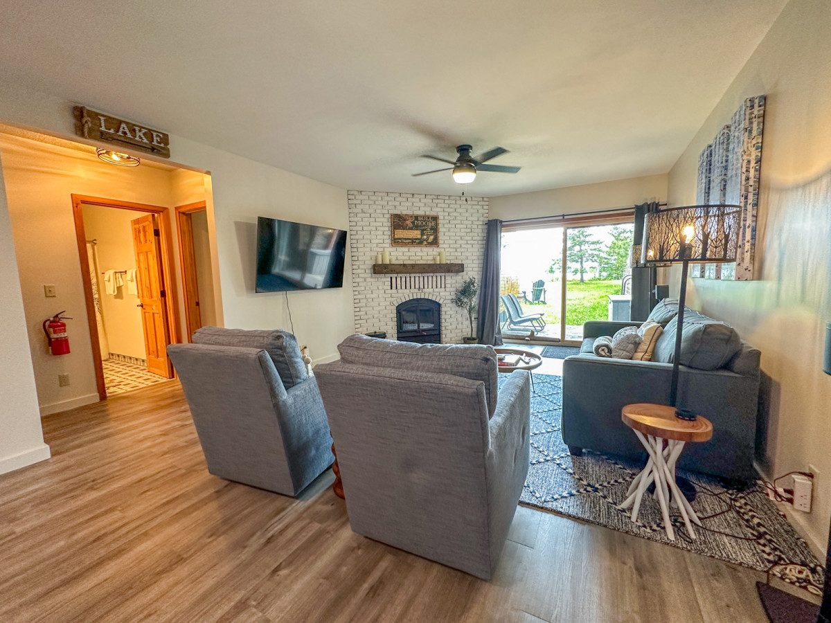 Moose Tracks 215 on Devil Track Lake is an immaculate, newly updated 2-story home located along the shores of Devil Track Lake just 8 miles up the scenic Gunflint Trail from Grand Marais, Minnesota. Inside you'll find a fully renovated home with extensive work done in 2021. Moose Tracks 215 on Devil Track Lake features two living areas and the unique combination of a gas fireplace in the main level living area and a wood-burning fireplace in the lower level living area. Enjoy the lake-facing deck or step out of the lower-level patio doors and enjoy the spacious backyard that leads up to the lake's edge.