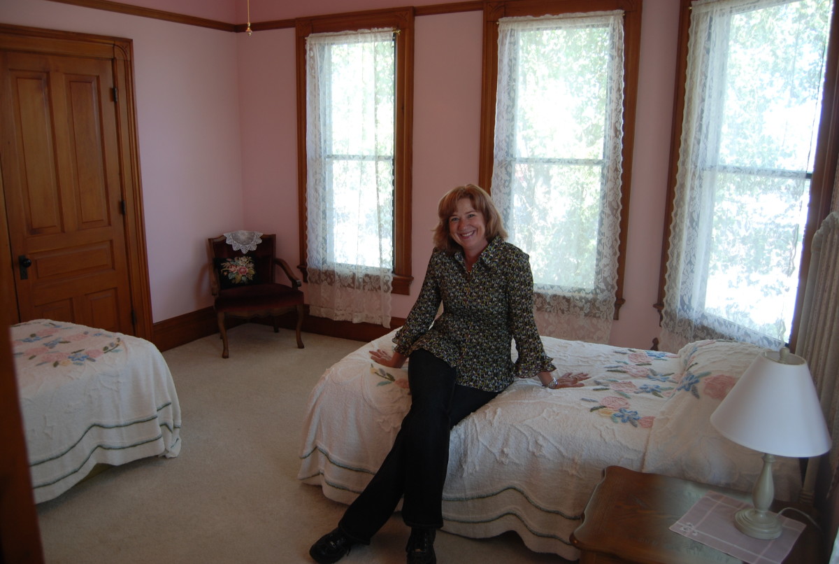 We have a bed & breakfast atmosphere that can accommodate up to 8 quilters / scrapbookers / crafters. We have 4 bedrooms with two twin beds in each along with 3 full bathrooms, including a jacuzzi tub and walk in showers. The home was built in 1897 for Dr. Wilson as his residence and office, the retreat still has his original intercom system, along with the oldest bathroom in Lake City. There are two porches one on the main floor and one on the 2nd floor overlooking Lake Pepin and downtown Lake City. You will have the use of the whole house, which also includes a family room, with satellite TV, DVD player with several DVD and VHS tapes for your use. A computer with high speed internet access along with a printer/scanner and free national wide long distance phone. We are licensed by the State of MN