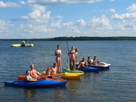 We offer modern conveniences with old fashioned values! Our cabins have kitchens, bathrooms, LCD TV's & Direct TV, Internet, microwave, grills, picnic tables. Cabins are lake level & we offer volleyball, basketball & playground. We have food, candy, and games available in our lodge. 1 mile from golf course. Boats, motors, canoes, kayaks, and paddle boat & pontoons available for your water activities. Wheel chair accessible cabins available! OPEN ALL YEAR! We offer ice house rentals on Blackduck Lake