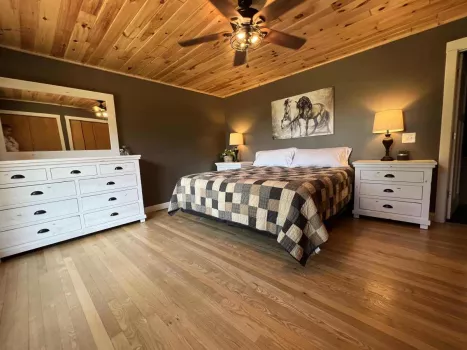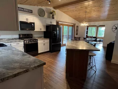 This is a private lake cabin located near Bigfork, MN (just north of Grand Rapids, MN). Open all year and perfect for gatherings featuring 3 Bedrooms and 2 Bathrooms, this beautifully remodeled open-concept farmhouse-style private cabin is nestled on the quiet shores of crystal clear Eagle Lake. Ideally located adjacent to some of our state’s highest-rated ATV & snowmobile trails, a convenience store with fuel and hand-dipped ice cream, Eagle Lake Vacation Cabin is the perfect place to plan your ATV & snowmobile riding, fishing, hiking, or fall color viewing get-away. This is a stand-alone private property not on Loon Point Resort or near the resort but is managed by the resort.